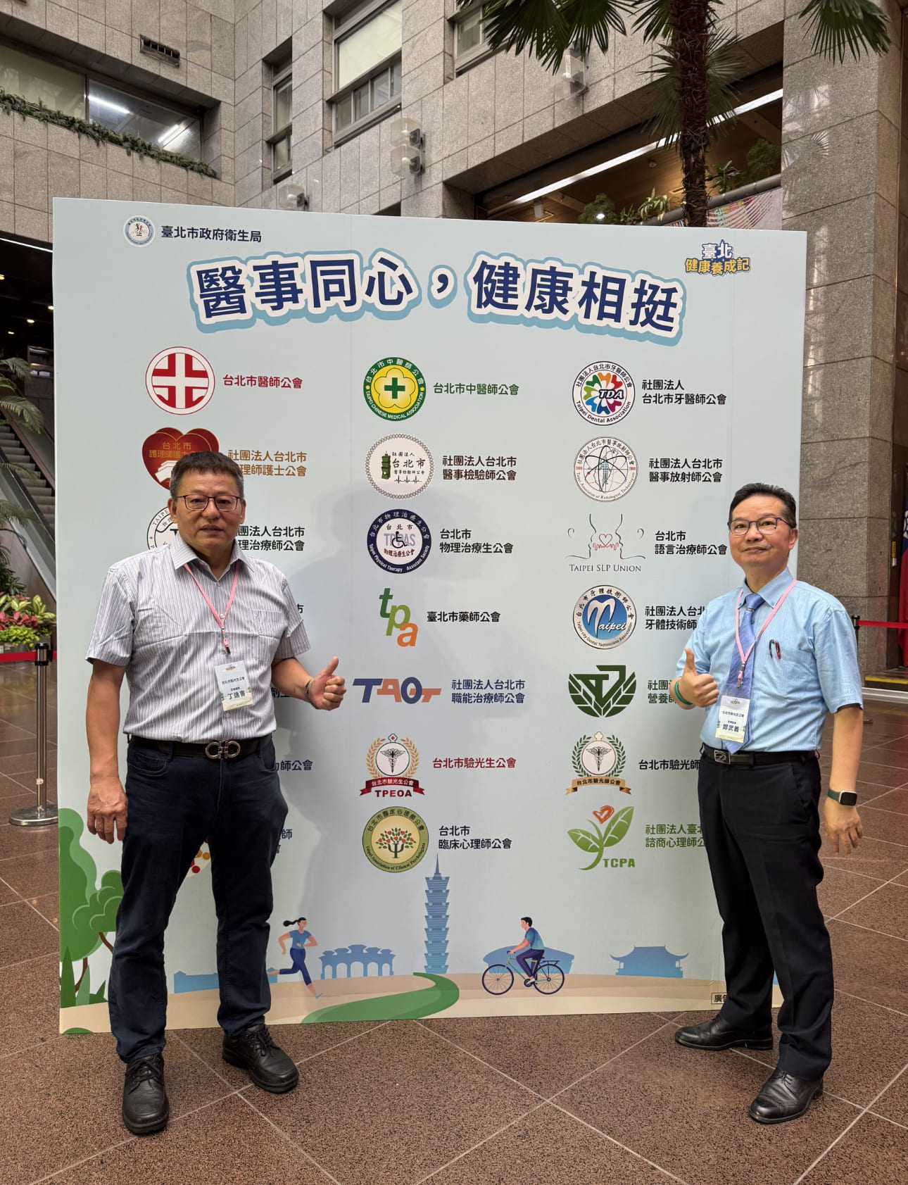 114.08.08 本會由鄭武義常務監事及丁逸書常務理事代表出席「臺北健康養成記」開幕活動,與來自21大醫事團體共同響應,攜手推動全民健康促進,現場與各界交流熱絡,一同為打造長壽健康的臺北城努力!1